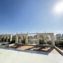 Common areas are beautiful and spacious. Feels like a luxury hotel lobby. There's a huge outdoor terrace which would be great in the summer. Note there's almost no electrical plugs in the common areas. Wifi is super fast, 431 down/ 122 up.