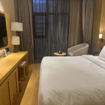 The environment of this hotel is quite good. The hotel provides self-service coffee. The staff checked in quickly. Seeing that I was with my child, I was recommended a room on the third floor. I give a thumbs up to the service awareness. When I checked in, I was told that water, cola and soda were provided in the room for free. The room was clean and comfortable. I ordered takeout and a robot delivered it to the room. I was very satisfied with this stay. I recommend it. Facilities: Good Hygiene: Clean Environment: Comfortable Service: Very good