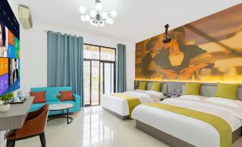 Deluxe Large Screen Audiovisual Twin Beds Room (Washing Machine, Unlimited Movies)