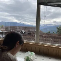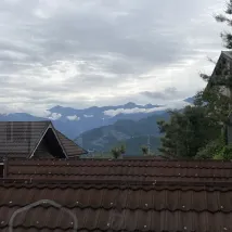 When you wake up in the morning, you can enjoy the mountain view from the small balcony