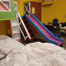 The room is really big. Although there are eight people staying in it, it doesn't seem crowded. There is a slide attached, and the children had a lot of fun playing. However, the sound insulation is not good. There is no smoke smell in the room, but the corridor has a strong smoke smell. It can be used as a reference for pure accommodation. The breakfast the next day is OK. It is OK to have a simple meal.