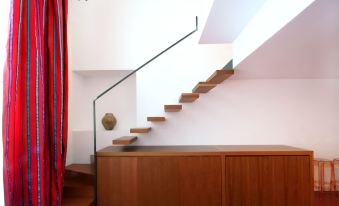 The apartment itself is a tasteful symphony of style and comfort. Every item of furniture and décor seems thoughtfully chosen, harmoniously arranged to create a space that feels both refined and welcoming. The duplex layout offers versatility—relax downstairs or ascend the elegant staircase to a serene sleeping area and a remarkably large square bathtub, almost inviting you to dive in and forget time altogether. All amenities—from the coffee machine to the washing machine—are discreetly and seamlessly integrated into the stylish furnishings, blending practicality with grace.