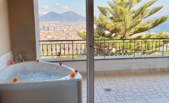 Pessimo rapporto qualità prezzo. Con mio marito abbiamo soggiornato una sola notte pagando più che allo Sheraton di Siena. La stanza pulita ma arredata in finto modernariato Ikea, ha le travi del soffitto non dipinte del tutto. Il mini frigorifero rumorosissimo era dotato di una sola bottiglia anch'essa mini di acqua del rubinetto, alla faccia delle norme anti covid. In bagno il rubinetto del lavandino non è adatto, infatti per lavarsi bisogna spostare le mani da un lato all'altro. Nei vetri della doccia ci sono ancora gli adesivi per evitare di romperli. Dalla stanza si poteva uscire in terrazzo in comune con l'altra camera dopo essere saliti da un tre gradini di legno Ikea, alla faccia delle norme sulla sicurezza, ed attraversando una finestra ribassata. Il terrazzo munito di poderose macchine per l'aria condizionata ha una splendida vista sul casello autostradale. La colazione fornita, consiste in merendine, pavesini e marmellate confezionate. In astanteria, comune alle tre stanze, vi è una macchina per caffè e bevande calde che è un'offesa al rinomato caffè napoletano. Il signore che ci ha accolto sembrava fosse molto scocciato della nostra presenza e del fatto che avessimo accettato la sua offerta di due cornetti che probabilmente venivano dalla tavola dell'ultimo re Borbone. Siamo convinti che a Napoli si possa trovare di meglio.