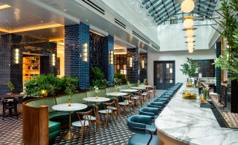 Dream Nashville reimagines two historic landmarked buildings steeped in a rich and colorful heritage while maintaining the celebrated history of Printers Alley. Situated on 4th Avenue North the hotel is a short walk from its downtown core: conveniently located near the Country Music Hall of Fame and Museum: RymanAuditorium: Frist Art Museum: Bridgestone Arena: Nissan Stadium: Broadway Strip and a 15 minute drive from the Nashville Intl Airport. With 168 art deco-inspired guest rooms including 21 exquisite suites: this airy urban retreat offers lofty ceilings and a colorful palette of deep crimson and blue jewel tones. Architectural and design details include richly overdyed Oushak rugs: Karelian Burl wood closets and Japanese-style Suminagashi- marbled wall covering. Hand-crafted oak headboards with suede upholstery honor the location’s classic historic feel.