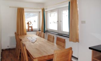 Apartment house "Altes Zollhaus", 1'420 m a.s.l., 2 storeys. 4 apartments in the property. In the district of Fuhrmannsloch 4 km from the centre of Nauders, 3.5 km from the lake, 2.2 km from the skiing area, in a cul-de-sac. For shared use: property 400 m2 (fenced), garden (fenced) with meadow. Terrace, garden furniture, barbecue, children's playground. In the house: storage room for bicycles, storage room for skis, washing machine (extra) (for shared use). Bread roll service on request. In Winter: please take snow chains. Stepped path (13 steps) to the house. Parking on the premises. Supermarket 4 km, bus stop "Nauders Reschenpass" 1.6 km, railway station "Landeck" 45 km, outdoor swimming pool 17 km, lake Reschenee 3.5 km. Golf course (9 hole) 31 km, walking paths from the house, cycle lane 50 m, mountain railway 2.2 km, ski lift 2.2 km, slopes 2.2 km, ski school 2.2 km, sled run 2.2 km, cross country ski track 50 m. Well-known ski regions can easily be reached: Nauders, Schöneben, Samnaun. Well-known lakes can easily be reached: Reschensee 3.5 km. "Altes Zollhaus", 5-room apartment 127 m2 on 1st floor, south-west facing position. Bright, renovated, beautiful and cosy furnishings: living room with satellite TV. 2 double bedrooms, each room with 1 double bed. 1 room with 2 beds, kitchen corner and shower/WC. 1 room with 3 beds. Kitchen (oven, dishwasher, 4 ceramic glass hob hotplates, toaster, kettle, microwave, electric coffee machine) with dining table. Shower/WC, sep. WC. Oil heating. Wooden floors. Facilities: children's high chair, baby cot, hair dryer. Internet (WiFi, free).