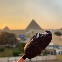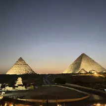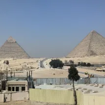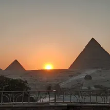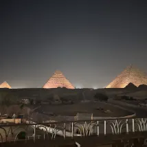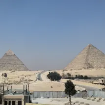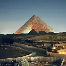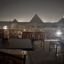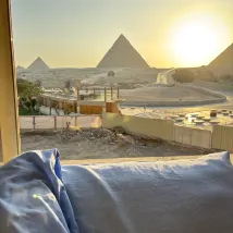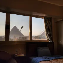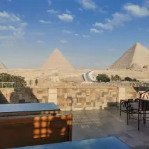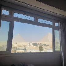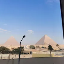 It is very close to the east gate of the pyramids, 2 minutes away. When you open the window, you can see the pyramids and the Sphinx. Although it is a hotel environment, it wins in terms of scenery. The rooftop terrace is great for watching the pyramid light show, saving you the ticket to go in.