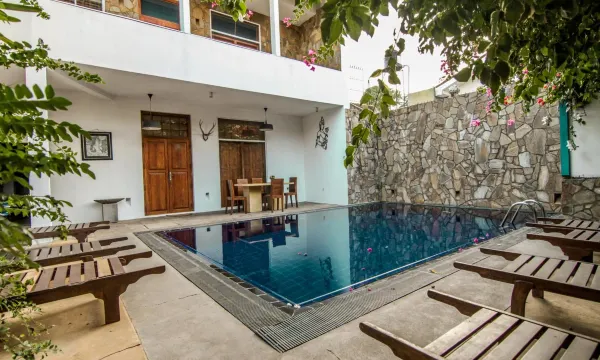 A very atmospheric place!!! This is probably not a hotel. More likely, it looks like a guest house, like in our south))) There is no grounds as such, but there is a spacious, well-kept and very green courtyard, with paths, flower beds, and sitting areas. Lots of greenery. Various types of houses, of varying heights, line the paths. Like a small and cute village))) Very fabulous. It's a pity that my stay was limited to only one night. I chose this hotel because of the price of the room and its proximity to the airport, 20 minutes by taxi. I flew out early in the morning. The owner is very friendly and nice, always greets guests personally, is always ready to communicate and does it with great pleasure. Regarding the location of the hotel: yes, it's not on the front line, and not on the main street, a little further back. This adds to the charm of this place. The street with cafes and the beach is a leisurely 7-minute walk. You go out to the beach, and there is a super ocean!!! It really feels like something great, I haven't experienced anything like this on other beaches on the island. The infrastructure is fantastic!!! Lots of cafes of all kinds and levels, all with great prices!!! We'll definitely plan more days in Negombo on our next trip))) And I'll definitely stay at Gomez Place!!! About the room. I had a very spacious room with a huge en-suite bathroom and a furnished balcony. The room had everything you need: a safe, furniture, complimentary water, and a minibar with a variety of drinks at a minimal price. The only downside I'd probably note is the lack of an on-site cafe, so you could sit in the courtyard and enjoy some tasty treats. Please wait for me again!!!