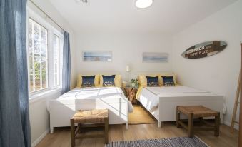 Nicely furnished and everything you need for your stay. Stayed with family and friends including two young children. There is a room with bunk beds and a crib with plenty of space to roam around. Bucket of welcome treats appreciated and house has games and children books. There is just one bathroom with a missing window shade that faces the front of the house that one guest was uncomfortable about but it wasn’t a problem just showering in one of the other two instead. Although we didn’t get the time to put to use, there are beach passes and life vests provided with kayaks in the yard that makes it a bonus. Host was very responsive to our needs and questions!