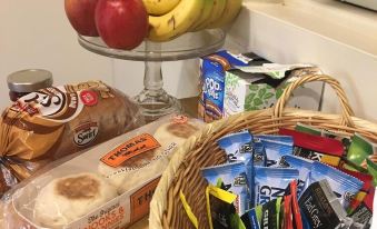 We have WiFi throughout the apartment and a smart tv plus a DVD player for your relaxing pleasure. The kitchen has a fridge, microwave, full stove, toaster and coffee maker. You’ll find plenty of snacks and breakfast fixings. It has everything you need to make meals.