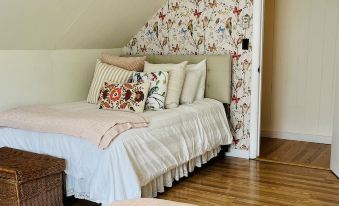 Comfortable for several people with a full kitchen and large living space in addition to 2 spacious bedrooms and one bathroom. There’s a little over 900 square feet of space. The back bedroom has a queen size bed with lots of room to spare. The front room has a queen size bed and a full size bed. The couch in the living room is super comfy for sleeping and the queen size air mattress will fit in either bedroom or even the living room. So you could fit up to 8 people if you really wanted to. We regularly host 6 people and everyone has been happy.
