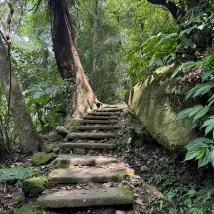 The trail is made of natural stone slabs or primitive forest paths, which are slippery when it rains.