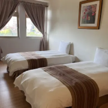 The hotel is in a great location, very close to Tamsui MRT Station and Yingzhuan Road Night Market, making it convenient to taste the famous local delicacies (fried lamb, salted chicken). There are parking spaces for car travel, so you don't have to worry about finding a spot. The living room outside the room is large, the space inside the room is also large, the bed is OK, there are not many types of breakfast, but everything is delicious. Disadvantages: the curtains have ordinary blackout, and the air conditioner is a bit loud. Overall, it is pretty good and worth recommending!
