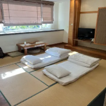 The location is incredibly convenient. The hot spring water is odorless and tasteless, which was a big hit with the kids. Both the quad and double rooms come with private bathrooms, offering a wonderfully comfortable soaking experience. The quad room also features a very large open space, which the kids absolutely loved for playing. The double room perfectly captures a delightful and authentic Japanese travel vibe. We'll definitely be back for another visit!