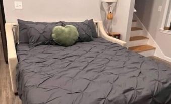 The bedroom has a plush King size bed, 48” Roku TV with a closet and half bath, also with radiant heated flooring. The entry level has a very comfortable, hospitality grade pull out sofa bed with a queen plus size gel memory foam mattress.