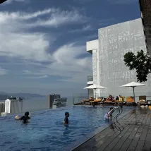 Hotel location is convenient. Lots of shops and restaurants nearby. Close to tourist spots - usually within 10 minutes by car. Lots of choices for breakfast. Rooftop sky bar & infinite pool are impressive.