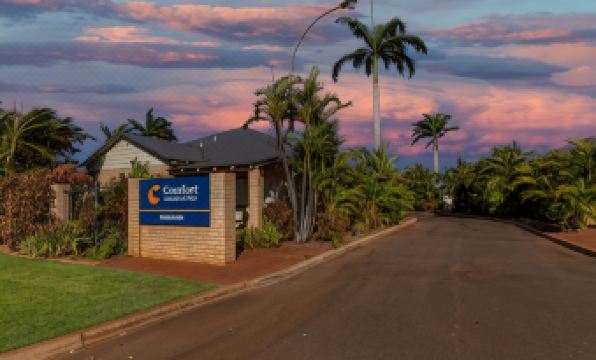 Comfort Inn & Suites - It's even a bit palatial after many nights in a donga ... The property is a low-rise, impeccably clean building in an industrial town. It features a lovely, well-maintained garden. My room was thankfully on the cooler side. The room also had a brilliant washing machine and tumble dryer. No need for that, as the room has a good old-fashioned clothesline. I popped that outside in the breeze. My jeans and sundry shirts got a decent wash and fresh air dry!@ BONUS... and all without having to hunt down gold coins either. Who thinks about detergents? Well, these people do... A big plastic cup of washing soap in with the washer... Thoughtful and wellcomed. Karratha is a good town, industrial, so don't expect cheap rates. However, for what it is, the Comfort Inn & Suites Karratha is worthy of a 10 out of 10. Crisp sheets - decent towels - good showers - a work desk, coffee and a few biscuits -monster TV that I never turned on. A nice room. I needed two days of rest - I got it by staying here. Thanks to Violet and the cheerful staff - friendly people with ready smiles. Very much appreciated