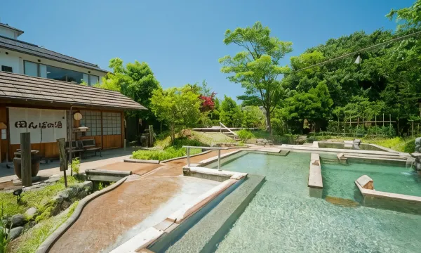 石川県のふっこう割を利用して、泊まりました。金沢からは車で30分位でした。 部屋は半露天風呂付きの和洋室でした。部屋の露天風呂やお風呂は温泉ではないですが、お湯は流しっぱなしになっています。翌朝に部屋の露天風呂を利用しました。二人位入れる露天風呂で、シャワーも完備されています。つれあいは利用せず、翌朝は小さい方のに内風呂に行きました。 こちらの宿の露天風呂は北陸で一番大きいとの事です。 露天風呂は混浴で、男女共に湯浴みを来て入ります。まず男女それぞれの大浴場に行き、お風呂に入る支度をして、内風呂に行き、そこから露天風呂の脱衣室に置いてあるが湯浴みを来て、露天風呂に出ます。湯浴みは長方形のバスタオルより大きい肌にまとわりつかない布で、ボタンでとめるようになっています。残念なのは、露天風呂は朝は入れません。 混浴は嫌だなと思っていましたが、湯浴みを着るとそんなに気にならずでした。カップルや御夫婦も多かったです。週末だったためか、日帰りのお客さんが多かったです。 内風呂は大きく、洗面エリアには化粧水や乳液など置いてあります。 夕食は基本会席に鮑のバター焼きがついているプランで、朝夕とも個室でいただきました。お酒類は高めで、地酒の300ccが1900円でした。 食事内容はとても良かったです。刺し身も前菜なども全ての美味しくいただきました。鮑がなかなか来なくてやっと来て、まだ鮑は動いていたので、刺し身にできないか聞いたら、お刺身にしてくれました。今まで食べた中で一番の大ぶりな鮑だったので、つれあいは「これだけでも寿司屋で食べたら1万位、取られるぞ。」と刺し身に大喜びでした。 朝食も美味しく、いつも食べている宿の料理より薄味で、ヘルシーだと話しました。 お食事ところのベテラン仲居さんが親切でした。海外から来たスタッフさんも頑張ってました。 チェックアウトの時もチェックインの時も女将がいて、お出迎えやお見送りをしてくれました(写真も撮ってもらいました)。 桜満開の時期の田んぼの湯は、忘れられない思い出になると思います。
