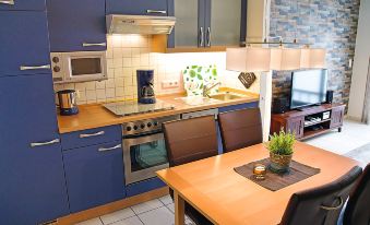 Comfortable apartment house. In the resort 400 m from the centre of Norddeich, in a central position, 350 m from the sea, 500 m from the beach. In the house: washing machine (extra), tumble dryer (extra). Supermarket 1.6 km, restaurant 300 m, bakery, café 400 m, bus stop "Ocean Wave" 550 m, railway station "Norddeich Mole" 1.9 km, ferry 1.8 km, sandy beach 500 m, outdoor swimming pool 14 km, indoor swimming pool 600 m. Golf course (18 hole) 8 km, surf school 500 m, tennis 2.3 km, minigolf 600 m. "Witthuus-Baltrum", 2-room apartment 42 m2, on the ground floor. Comfortable and stylish furnishings: living/dining room 20 m2 with satellite TV (flat screen), DVD. Exit to the terrace. 1 room 11 m2 with 1 double bed (2 x 90 cm, length 200 cm). Kitchenette (oven, dishwasher, 4 ceramic glass hob hotplates, toaster, kettle, microwave, electric coffee machine). Shower/WC. Underfloor heating. Terrace 11 m2, south-west facing position. Terrace furniture, barbecue. Facilities: children's high chair. Internet (WiFi, free). Parking at the house. Please note: non-smokers only. Beach chair on the terrace. Garden (fenced) for shared use. In case of reservation of extra beds, 1 double sofa bed (130 cm, 200 cm long ) is available in the lounge.