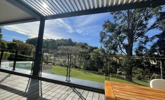 Yes, Large architect-designed house has a swimming pool for guests.Does Large architect-designed house provide a pool?