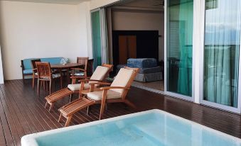 YOUR VILLA: If you like Italian marble, floor to ceiling windows, oversize melt-to-your-body king beds, jacuzzi tubs, gourmet kitchens and lavishly inviting living rooms, two and a half bathrooms, spacious fully furnished balconies with a private plunge pool, then this 3000 sq. ft. piece of personal heaven is for you. Your room is carefully tended to by the same sweet maids each day. Coffee and tea are served in your floor's lobby area each morning, and a fine chocolate on your pillow will end your day that evening. Internet is included. With sleeper sofas for larger groups, your 2-bedroom unit sleeps up to 8 people: 1-bedroom unit up to 6.