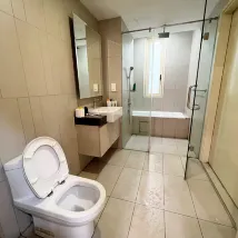 Bath tub is relatively clean, aircon is good, cleanliness is acceptable, only the washing machine was faulty, everything else required is working well. There were 2 toilets, sufficient for all of us, and we were given 4 towels, also with shampoo and shower gel, but take note there is not toothbrush and toothpaste provided.