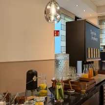 Unfortunately no drinks in the mini bar. Otherwise a solid hotel. Room had a large desk and a comfortable bed. What is not so nice is that the pillowcases are too small, the inside of the pillow peeks out. Not particularly hygienic