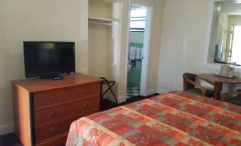 A lower cost motel that was safe and clean. Had a refrigerator, microwave and standing shower. Man at the office window was helpful and friendly. I would stay here again when visiting the area!