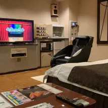 The most noteworthy thing is the large TV! It's HD and has excellent speakers. It allows you to watch local TV, free on-demand movies, and access online platforms. In the evening, you can buy some drinks and food and watch TV from the comfort of your bed... it's so relaxing.