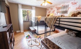 - Kids room with full-over-full bunkbeds and many games/activities for kids and/or family.