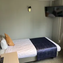 The room is not too small, and you can open two suitcases at the same time. The room has everything you need, including a kettle, towels, a hair dryer, and plenty of sockets. There is a cabinet above the bed to charge your phone, which is very convenient.