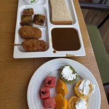 The hotel breakfast was very good, offering both Japanese and Western options. Although the dining area was small, there was a good variety of food. It was exquisite and delicious; we were thoroughly impressed.
