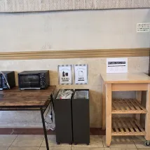 While it's a bit of a walk from Namba Station, it's a shorter, more convenient walk from Daikokucho. Nearby, there's a Life supermarket open until midnight and a FamilyMart convenience store, which was incredibly convenient. The room was clean, and they offered a good variety of sweet pastries for breakfast. I didn't expect much since it was described as a 'light meal,' but they provided about three different types of pastries, which was surprisingly filling. I was extremely satisfied with this wonderful hotel. I came to visit the Expo, and I'd even consider making it my regular lodging. Female guests received complimentary amenities, which was a lifesaver as I had forgotten my cleansing oil and was planning to buy some at Daikoku Drug. While the room appeared very clean, I did notice some dust and debris between the bed and the wall. I believe that paying attention to these less visible areas would greatly enhance the guest experience.