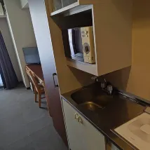 The building itself is a bit dated, but the bathroom has been recently renovated and the cleaning was very thorough. The room comes with a microwave and an induction cooktop. The front desk staff were very friendly and helpful. Overall, it offers excellent value for money. Highly recommended.