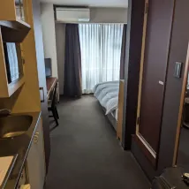 This hotel offers excellent value for money. Though compact, it has everything you could need. Our stay was very comfortable, and the location is fantastic – Namba is within walking distance, and the subway station is very close. Plus, there's a FamilyMart right outside the door, making it incredibly convenient. The front desk staff were also very friendly and welcoming.
