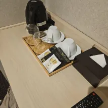 The room was good. But the double bed was pretty small. Single bed may be better. There is coffee and bread available for free every morning.
