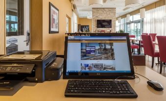 Arriving and leaving is a snap thanks to our express check-in and check-out. Start your day right with our free full breakfast buffet. Stay connected with free high-speed internet, and work out in our fitness room, which includes weight lifting equipment, a treadmill, and stationary bike. Make a few laps in our indoor pool. The business center is open 24 hours and there is a sundry shop on site as well as a sunny patio. Hungry? There are two fast-food restaurants across from the hotel and plenty more downtown, including pizza, Greek, and Thai restaurants.