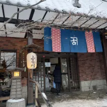 Not far from Otaru Station, the terrace house is across from the canal. There is a hot spring reception on the second floor and there are dogs there, which is very heartwarming.