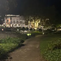 The staff provided excellent service, the atmosphere was fantastic, and they even had an outdoor movie screening.