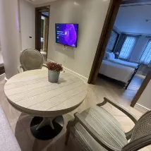 The room was great, and the hotel's atmosphere was wonderfully comfortable and inviting, with its charming British village-style architecture. Inside, you'll find a kids' play area, an open-air cinema, and a swimming pool. A delightful touch is being able to spot small animals in the trees all around the property.