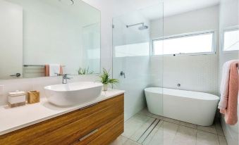 Across one single level, the pure freshness of this brand new designer home is shown in the internal layout and quality. This home was created to feel like your very own private resort, with beautiful outdoor and indoor living spaces and your very own private pool! More than enough room for the whole family to enjoy cooking in the custom kitchen, swimming in the large pool or enjoying a wine while the sausages sizzle on the outdoor WebberQ. Find us on Airbnb
