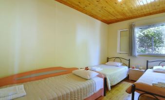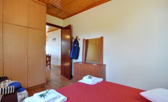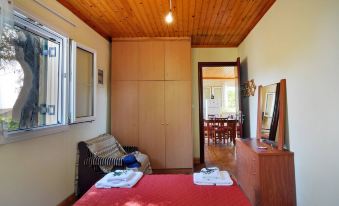 , The absolute tranquility of the green island of Corfu together with our hospitality make you an unforgettable summer vacation! > can comfortably sleep 2 to 6 people as it is 65 square meters. The > on Pelekas Beach is covered with local cypress wood and the roof consists of local roof tiles. The first bedroom has a double bed with bedside tables, a sofa that can be converted into a single bed, a dressing table with a mirror and a large wardrobe. The second bedroom offers exactly the same difference as three single beds. The air conditioning in our apartment cools down on hot summer days. The kitchen is fully equipped with all the necessary utensils and equipment such as a kitchenette with an oven, kettle and coffee machine so that you can enjoy your coffee and tea. A bathroom with a shower is next to the kitchen. In the kitchen-living room there is a large sofa that can be converted into a single bed and a satellite TV where you can see everything you want. On our veranda you will probably spend a lot of time enjoying the view of the garden and the sea. Tina's apartment house has an unprecedented tranquility and a lush garden of 300 m², in which the tenants can enjoy every moment of their vacation from breakfast to astonishment, sea view until evening sunset or even evening drink. We also keep in mind that our garden also offers an endless game for families with children so that children never get bored. In the middle of our garden are two olive trees that offer our tenants plenty of shade and coolness at all times of the day. The wave of the sea makes you sleep wonderfully, while you can take a last dip in the sea before going to bed. Our apartment offers free WiFi and internet access. We clean the apartment once a week and inside we offer towels, bed linen etc. The apartment house > is very familiar and relaxing, lies in a very rich nature and on the large sandy beach it is more than 30 meters wide, quiet and ideal for couples, companies and families because of the sand and the flat bottom of the water. The crystal clear blue water is one of the cleanest in the entire Ionian Sea and Pelekas Beach is one of the most beautiful, picturesque and calmest beaches in Corfu. The fine sandy beach offers unforgettable moments for people of all ages and especially for couples, families with children who are looking for a quiet and pleasant vacation. , A narrow coastal road (1.5 km) connects the village of Pelekas, one of the most traditional villages in Corfu with traditional taverns, mini markets, cafes, a petrol station and an interesting nightlife.The city beach of Corfu is 11 km (25 minutes) away and the Pelekas beach is located in the most central position of Corfu, so you can undertake any kind of trip through all parts of Corfu.About pets:No pets allowed.About children:Adults only.About smoking:Smoking is not permitted.About events:No events allowed.