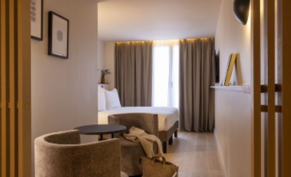 Really convenient location for us as travelling in and out of Gard du Nord, and only a 10 minute walk with luggage. The hotel was newly fitted out and the small double room was perfectly laid out and whilst compact, it was absolutely fine for what I needed, (a single person occupancy) as it was very clean, well presented, stylish room, the double bed was really comfortable and the bedding great too. It was incredibly quiet and the temperature was also spot on. The reception staff were really helpful and friendly. There were USB points in the room, which helped massively as I forgot my adapter and I asked for an iron and they brought it to me within minutes. The local restaurants and bars were great, and a lovely stroll down to the Pompidou centre.