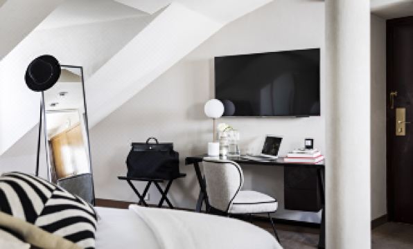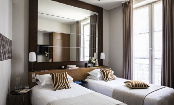 de l'Elysée and were first offered a standard room on the first floor (room 002). There was a sewage pipe running through the room, and it had a strong feeling of humidity that you could notice immediately. I understand that most hotel rooms in Paris are small, but this one was extremely tiny, very old, and uncomfortable.