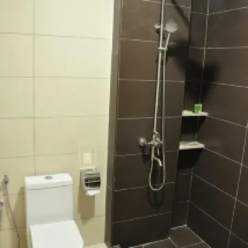 Checked in after 2 AM. Parking was quite easy as it's right in front of the lobby. The location is near Petronas and Speedmart, so it's easy to find food. However, when entering the room, there's a need for improvement because there was an unpleasant smell. The towels also smelled. For me, the cleanliness was really not okay. The lobby is nice and cool though. The room itself is big, just needs improvement.