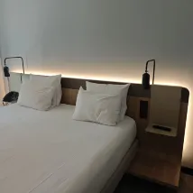 A modern hotel right next to the train station. The room is bright and quite spacious. The staff is friendly, but a bit slow and confused when checking in, even though there were four administrators. But this is not critical. Breakfast is sufficient. Convenient sockets by the bed. For me, the only serious minus was the lack of hair conditioner in the bathroom. There is shampoo, shower gel, and liquid soap. There is no conditioner. And I noticed this after washing my hair. Unpleasant. And personally, I do not really like the fact that they are not in individual bottles, but in large containers, albeit branded. The shampoo seems to be sulfate-free, it does not foam well.