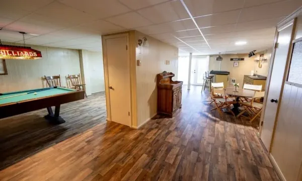 - Level One – The ultimate bar & game room with a pool table, fireplace, TV, full bathroom, and a cozy living area