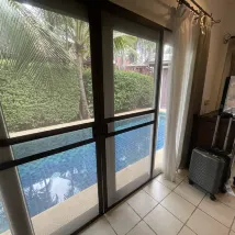 I truly love this place, so quite and peaceful and the private pool was clean. The service by day Noe and night receptionist was amazing any small things you needed were taken care of immediately. The location was pretty good 7-11 and money exchange were a few hundred feet away. There is one major complaint, the was like on the cement floor i never knew a bed could be so hard. Luckily they have mattress pads and made a big difference. I asked them they get so many complaints about the beds why they don't just fix it. Makes no sense. I swam every morning it was perfect and the rooms are huge. Shopping is pretty close, I have a hard time walking but I was able to make it and back to terminal 21. Great beach right down the road and say a few family's there.i would give a 5 but those beds are awful.