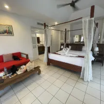 Each room is a small, standalone house, which the kids loved. They never got tired of swimming in the pool three times a day. Showering was very convenient, and there was a door next to the pool that led directly into the pool. At night, we turned right onto the main road and bought a lot of street food to eat in our room, which was also very convenient. The Sanctuary of Truth is not too far away by taxi, about 15 minutes. The resort environment is nice, but the breakfast is average, with a very limited variety, and the furniture is quite old. It is more suitable for families who like a quiet trip or couples who prefer a quiet and private environment.