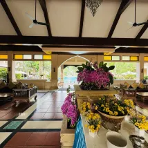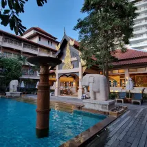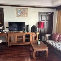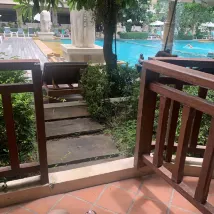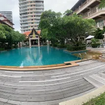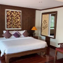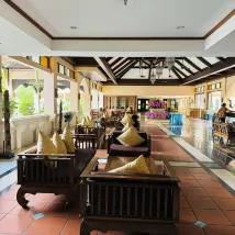 Upon entering the lobby, you're greeted by traditional Thai architecture. The lobby is spacious and faces directly onto the pool and beach, a design I feel is common in many older, more traditional Thai hotels. After staying for a few days, I got the impression this was once a high-end establishment, evident from the mahogany furniture and mini-bar, bathrooms with bathtubs, a pool friendly to those who prefer shade, and its distinctive Thai-style perimeter walls 😄.