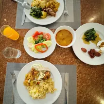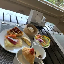 Breakfast is served at the poolside restaurant. The setting is pleasant, but the variety of food leaves much to be desired. There was almost no change in the menu over a week, and staples like congee or noodle soup were missing. It's primarily a Western-style breakfast, but the quality of the ham, bacon, and sausages was very mediocre. The only highlight was the egg station, which offered a good variety of options.
